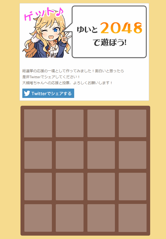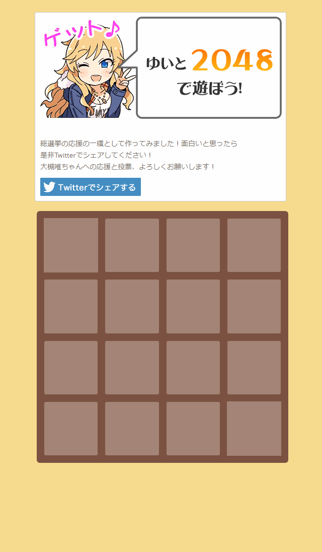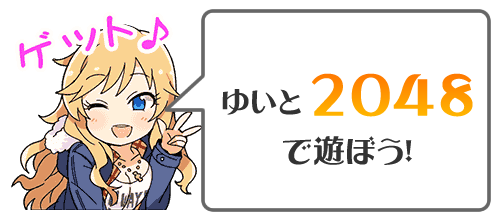 スワイプ(キー操作)で同じ数字のタイルを重ねると1枚のパネルになります。2048になるとクリアです。